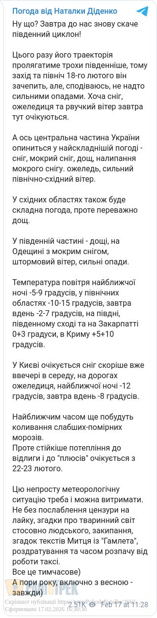 Вже з 22-23 лютого в країні потепліє до відлиги та «плюсів», повідомила синоптик Наталка Діденко.