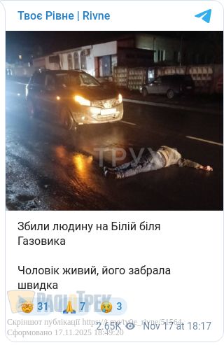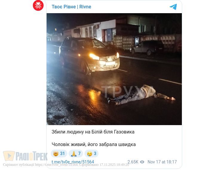 У Рівному на вулиці Білій легковик збив пішохода. Таку інформацію поширили в місцевих телеграм-каналах Рівного.