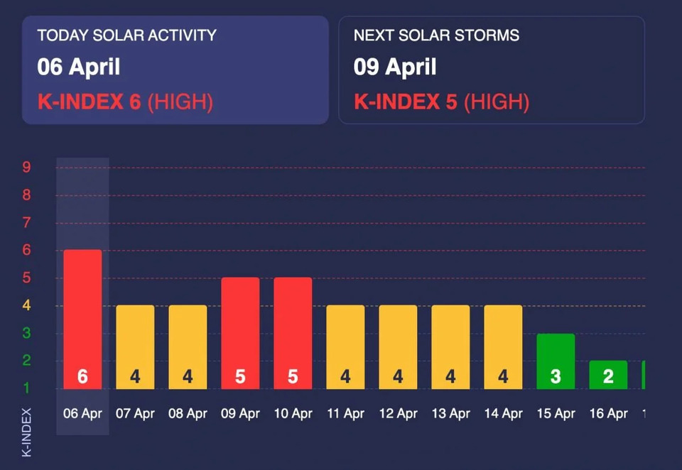 - 9 квітня – K-індекс зросте до 5. Варто бути уважним до самопочуття.