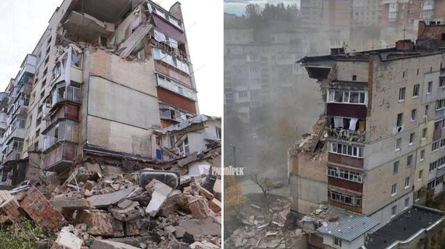 Три верхні поверхи будівлі зазнали значних руйнувань — частина будинку знищена, інша серйозно пошкоджена.