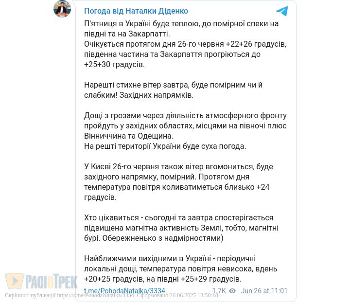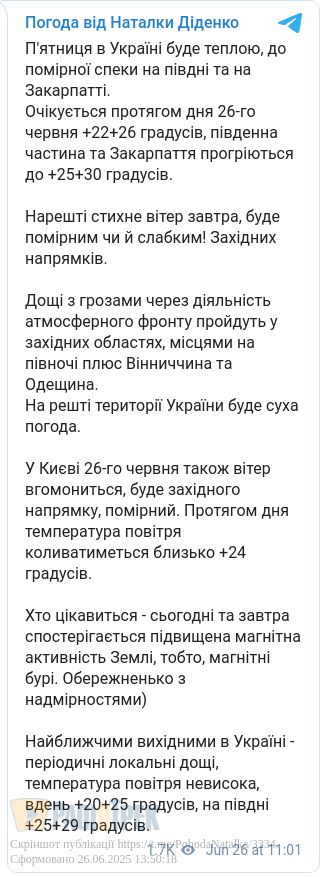 Прогноз погоди на п’ятницю