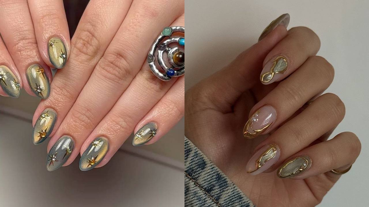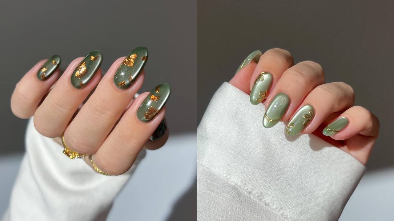 Візуально такий манікюр нагадує справжній камінь — із м’якими зеленими переливами та молочним підтоном. Він виглядає стримано й елегантно, незалежно від дизайну. Це може бути як мінімалістичний напівпрозорий варіант, так і глибокі смарагдові відтінки з делікатними золотими акцентами.