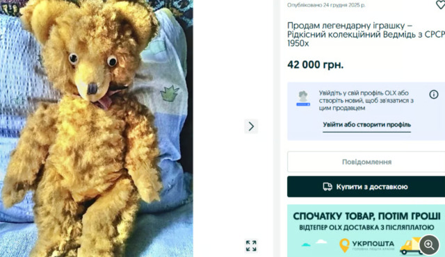 Не обходиться і без раритетів часів СРСР, які теж мають високу вартість. Наприклад, помаранчевий ведмедик 1955 року, виготовлений з тирси, оцінюється в 42 000 грн.