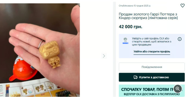 Серед найдорожчих і рідкісних іграшок є ексклюзивна фігурка Гаррі Поттера (модель VT401-K) з Kinder Joy, виготовлена у насиченому золотому кольорі. Вона практично не зустрічається на ринку, що робить її надзвичайно бажаною для фанатів, і її ціна сягає 42 000 грн.