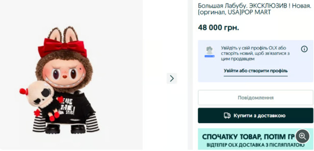 Також серед популярних і дорогих лотів можна знайти колекційні плюшеві іграшки бренду Labubu. Вони стали справжнім хітом у 2025 році, а оригінальні монстри часто були доступні лише за високою ціною.