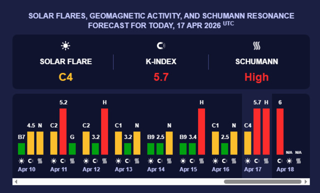У суботу, 18 квітня, очікується підвищена сонячна активність із К-індексом 6.