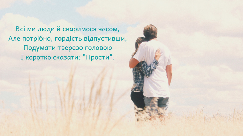 Прошу вибачення за все, що сказано і зроблено, не подумавши. Нехай те, що так гнітило серце, звільнить думки і полегшить душу. Адже прощаючи інших, ми знаходимо прощення самі.