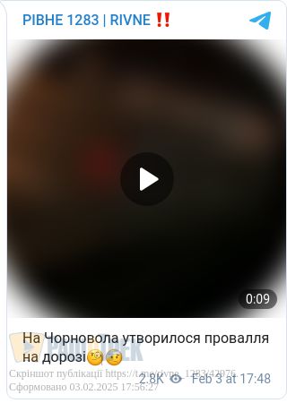 Провалля утворилося на дорозі у Рівному. На перехресті вулиць Чорновола - Басівкутської близько години тому провалився асфальт.