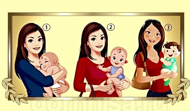 Гляньте на головну картинку та оберіть ту жінку, яка на вашу думку, тримає на руках чуже маля.