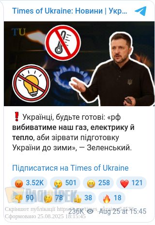 - Зеленський сьогодні заявив, що рф намагається зірвати підготовку України до зими, завдаючи ударів по енергетичній інфраструктурі.