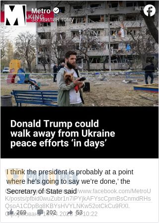 З його слів, якщо зусилля Вашингтона зупинити війну в Україні зазнають невдачі протягом декількох днів, то президенту США Дональду Трампу повідомлять, що переговори більше не є життєздатним варіантом.