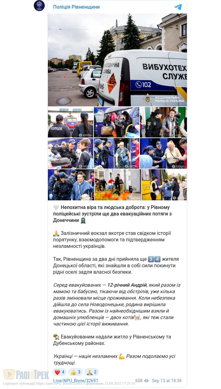 У Рівному зустріли ще два евакуаційних потяги з Донеччини. За два дні на Рівненщину прибули 34 жителі.