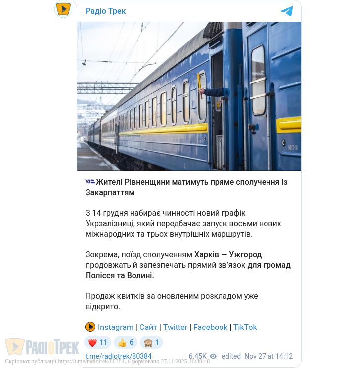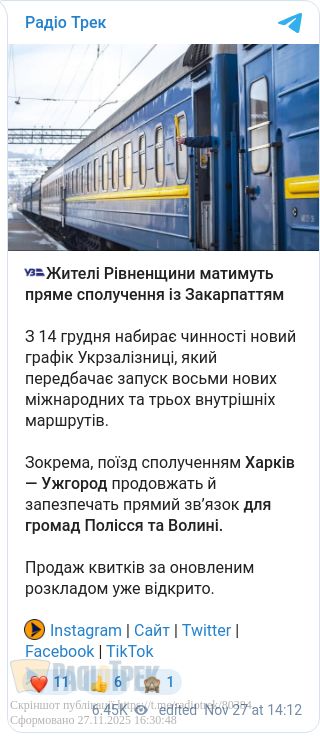 Зокрема, поїзд сполученням Харків — Ужгород продовжать й запезпечать прямий зв’язок для громад Полісся та Волині.
