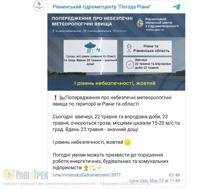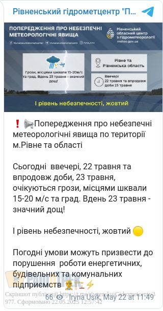 Це І рівень небезпеки, «жовтий», – повідомили у Рівненському гідрометцентрі.