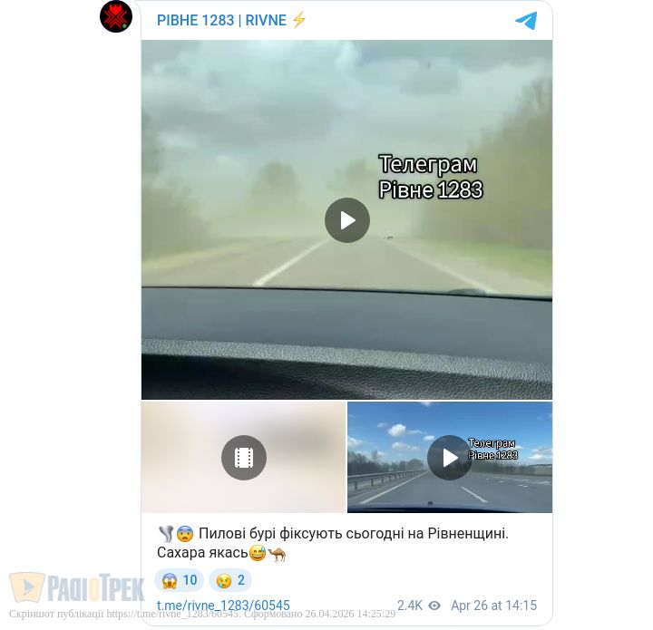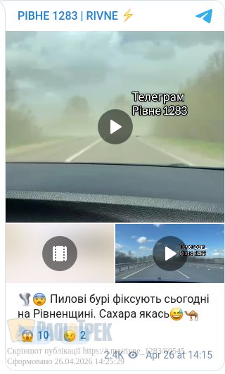 Місцеві телеграм-канали повідомляють про пилові бурі