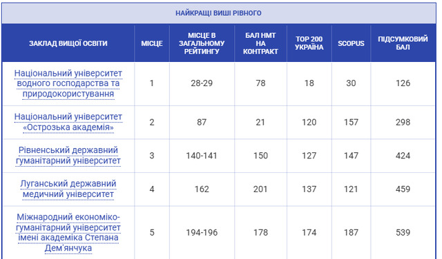 Рівненський університет потрапив у ТОП-10 консолідованого рейтингу вишів України