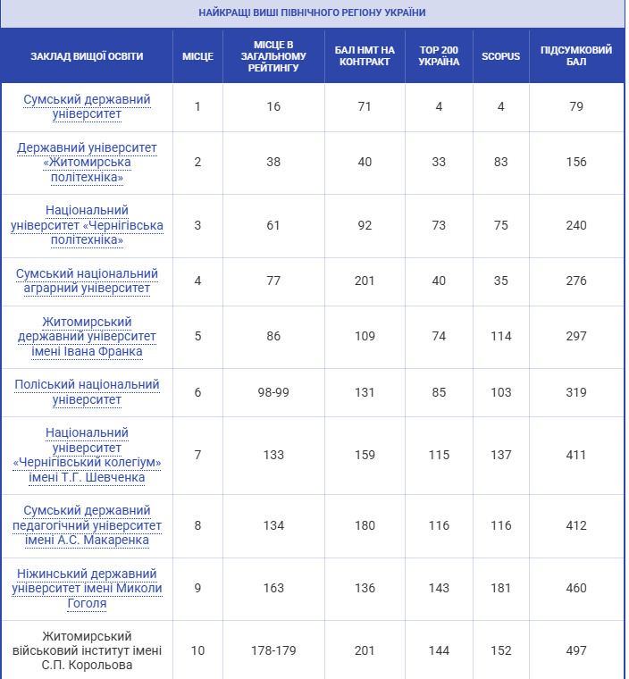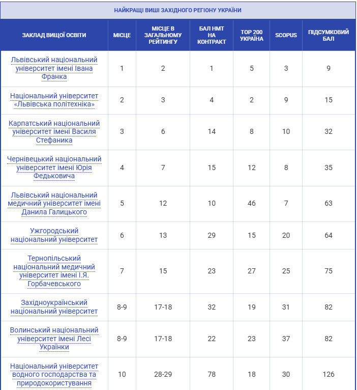З-посеред педагогічних закладів найкращим у рейтингу є Тернопільський національний педагогічний університет ім. Гнатюка.