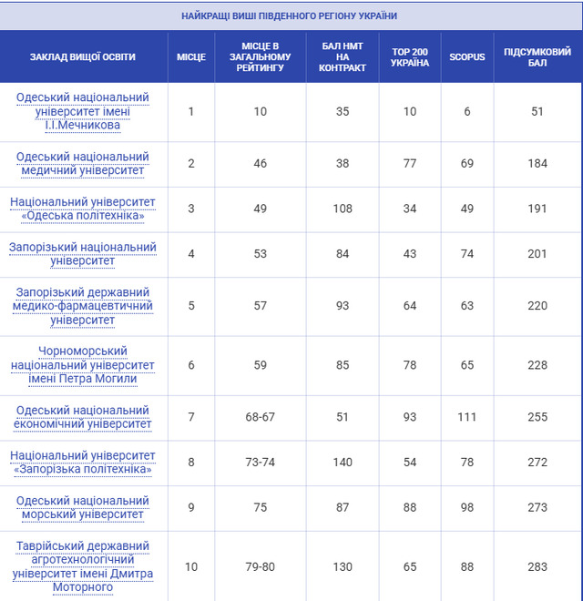 Традиційно для укладання Консолідованого рейтингу ЗВО використано відомі рейтинги університетів країни: «Топ-200 Україна», «Scopus» та «Бал НМТ на контракт», кожен з яких використовує важливі критерії оцінювання.