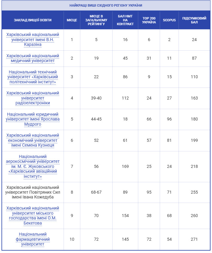 - П'яте місце серед найкращих закладів вищої освіти 2025 року належить Харківському національному університету ім. Каразіна.
