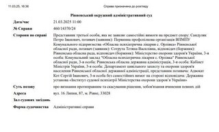 Засідання адміністративного суду у Рівному у цій справі заплановане на 21 березня.