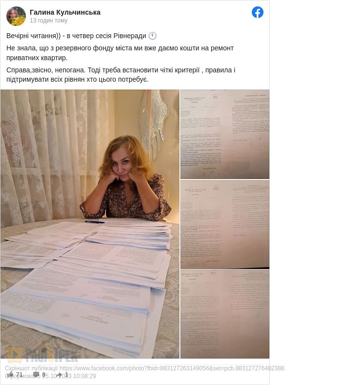 Справа непогана, але правил на подібні ситуації у міській раді немає. Увагу на це звернула депутатка Галина Кульчинська. З її слів, необхідно встановити чіткі критерії, щоб підтримувати всіх рівнян, хто цього потребує.