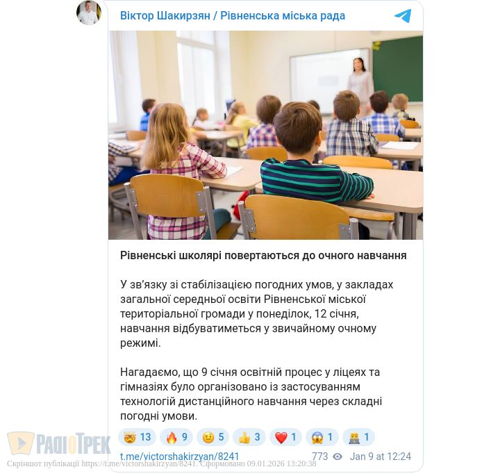 Робота шкіл Рівного з 12 січня: Відомо, як вчитимуться діти