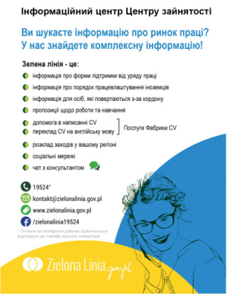 Також ви можете отримати допомогу у пошуках роботи, звернувшись на Зелену лінію за телефоном 19524. Вона працює з понеділка по п’ятницю з 8:00 до 18:00.
