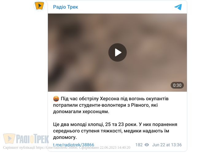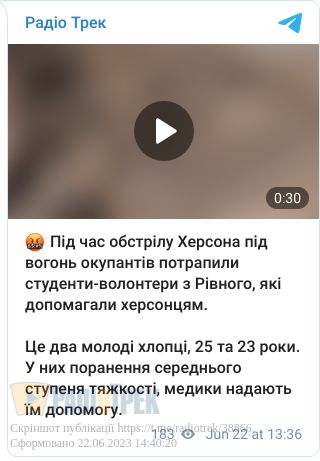 Також під ворожий вогонь потрапили студенти-волонтери з Рівного, які допомагали херсонцям. Це два молоді хлопці, 25 та 23 років. У них поранення середнього ступеня тяжкості, медики надають їм допомогу.