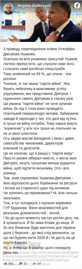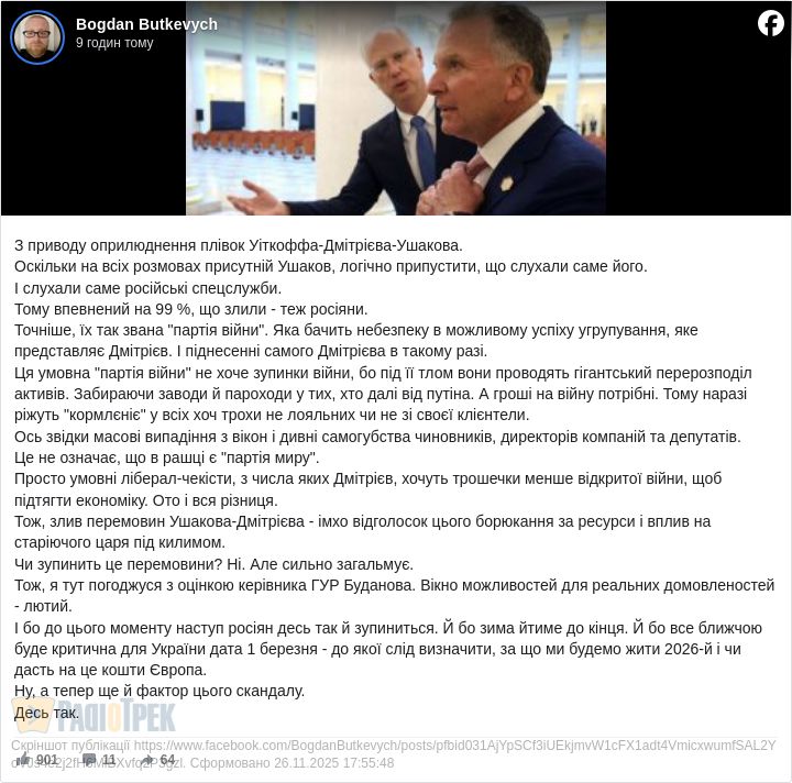 З приводу оприлюднення плівок Уіткоффа-Дмітрієва-Ушакова.