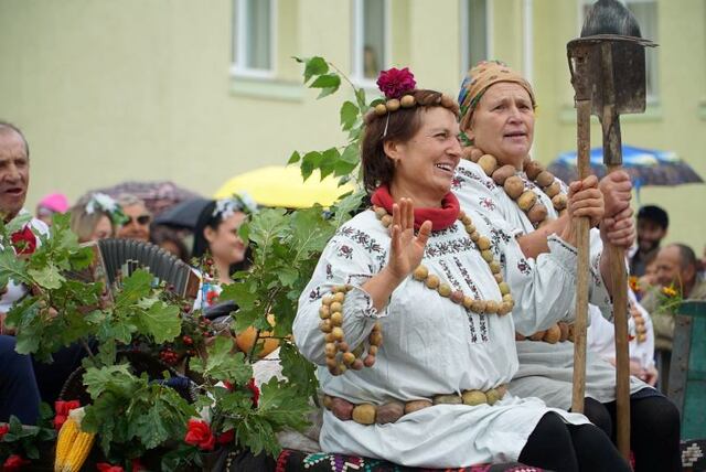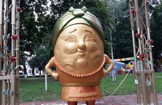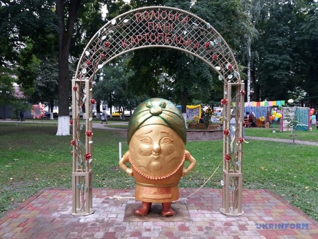 В Овручі, що на Житомирщині, відкрили пам’ятник картоплині. Золота «Поліська пані картопелька» зображена в образі традиційної української господині: руки в боки, червоне намисто і чобітки, хустина та фартух.