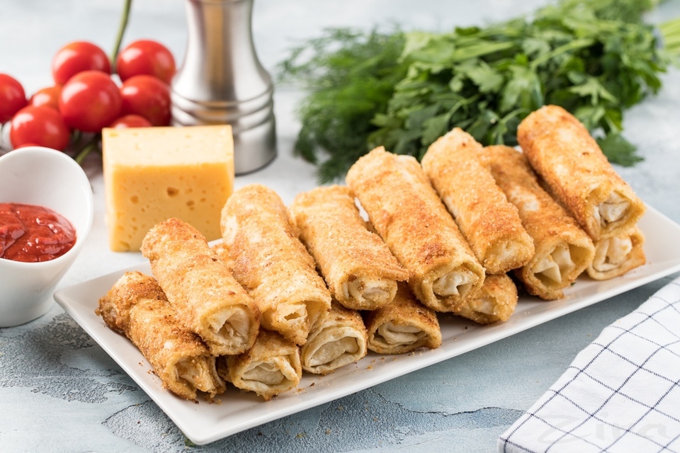 Це швидка і смачна закуска, яку можна приготувати за пів години. Лаваш тут замінює тісто — він тонкий, зручно загортається і швидко рум’яніє на сковороді. Усередині — ніжна курка, соковиті печериці, болгарський перець і тягучий сир.
