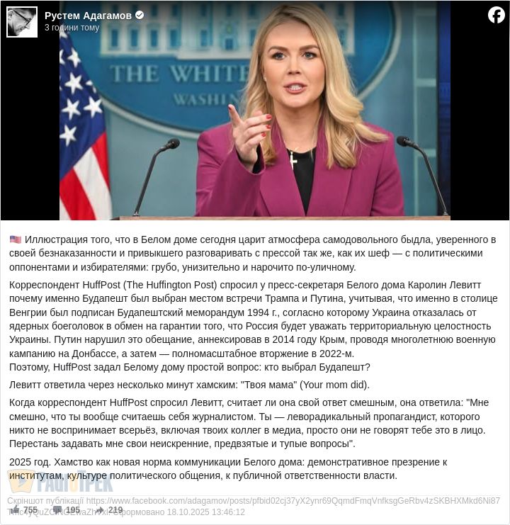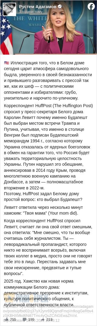 Вчорашня ескапада речниці президента США реально вражає. Як пише Рустем Адагамов: