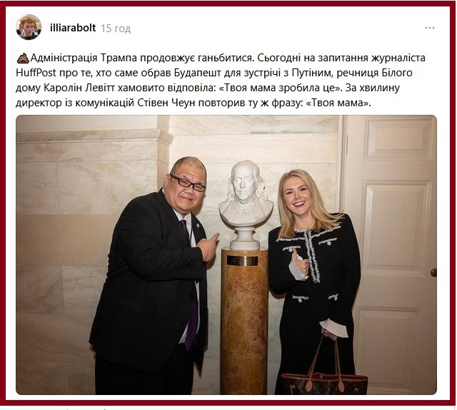 Кореспондент HuffPost (The Huffington Post) запитав у прес-секретаря Білого дому Каролін Левітт чому саме Будапешт був обраний місцем зустрічі Трампа і Путіна, враховуючи, що саме в столиці Угорщини був підписаний Будапештський меморандум 1994 р., згідно з яким Україна відмовилася від ядерних боєголовок в обмін на те, що Росія поважатиме цілісність України.