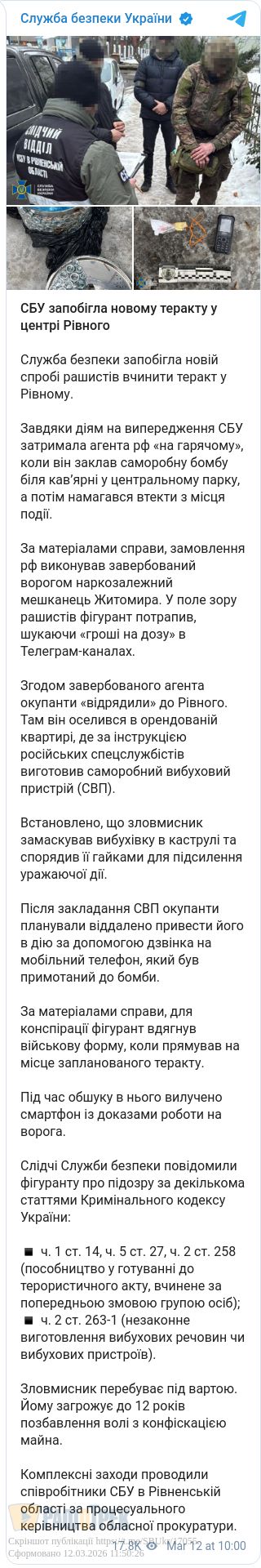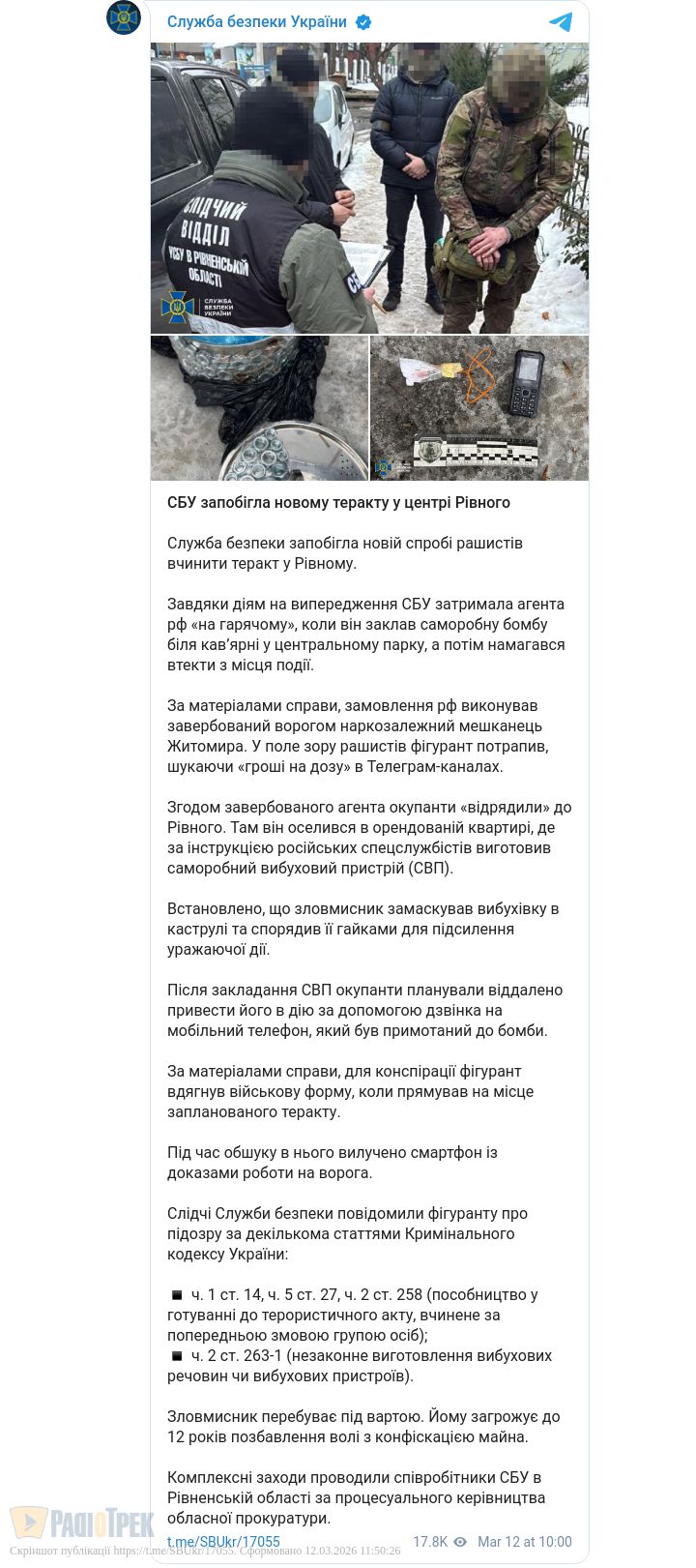 СБУ зірвала теракт у центрі Рівного: що відомо про агента рф