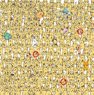 У цій головоломці вам потрібно знайти три банани серед натовпу Пікачу.