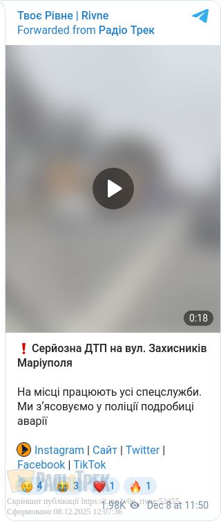 Серйозна ДТП сталася на вулиці Захисників Маріуполя у Рівному: чи є загиблі? (ВІДЕО)
