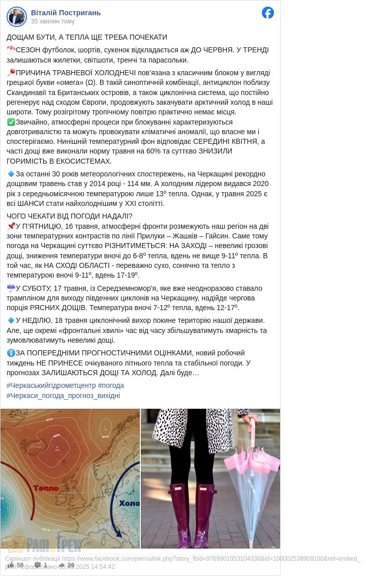 Сезон футболок відкладається: Синоптик назвав причину травневого холоду