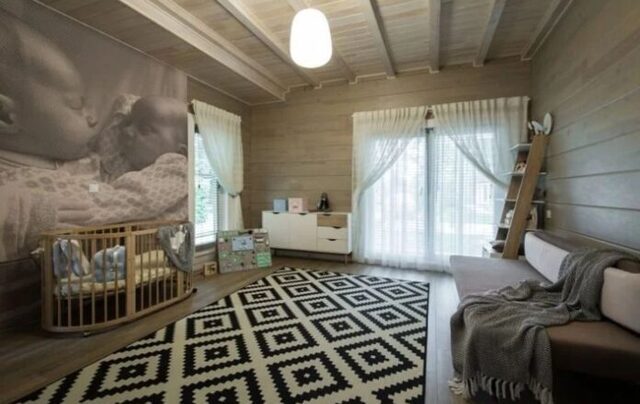 У спальні Олени Кравець та її чоловіка є зручне ліжко для відпочинку та робоча зона – письмовий стіл, розташований просто навпроти вікна. У дитячій кімнаті зіркова пара облаштувала зону для дітей, диван і місце, де дітлахи можуть погратись і розважитись.