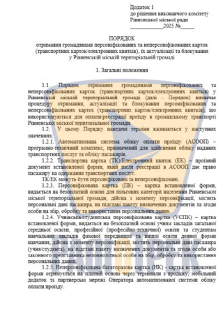 Міськвиконком у Рівному затвердив правила видачі персональних та учнівських карток для оплати проїзду у комунальному транспорті.