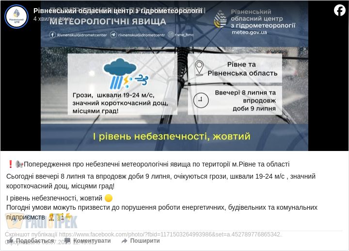 Це І рівень небезпеки, «жовтий», – повідомили у Рівненському гідрометцентрі.