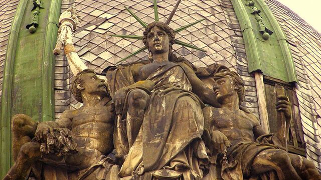 Разом із алегоріями промисловості та сільського господарства створює унікальний образ.