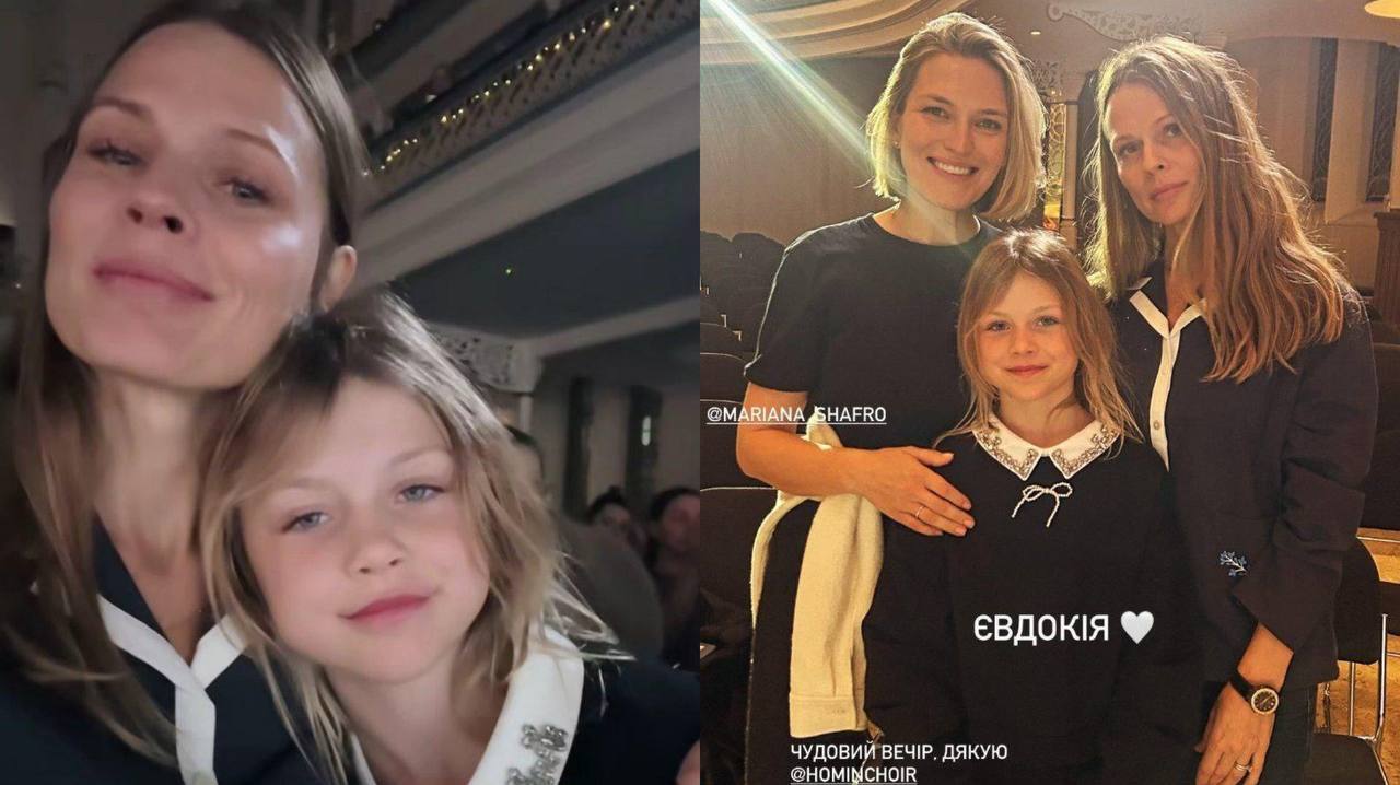 На концерті телеведуча була разом із 8-річною Євдокією. На фото видно, що донька дуже схожа на маму: колір очей, форма обличчя та волосся майже однакові.