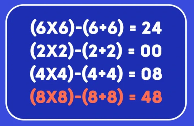 (8 × 8) – (8 + 8) = 64 – 16 = 48.