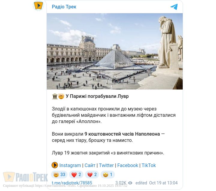У Парижі сталося зухвале пограбування Лувру — одного з найвідоміших музеїв світу.