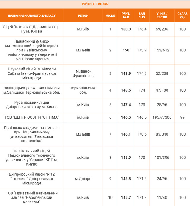 Тобто, на місце школи в рейтингу впливали як результати учасників, так і загальна кількість складених випускниками тестів.