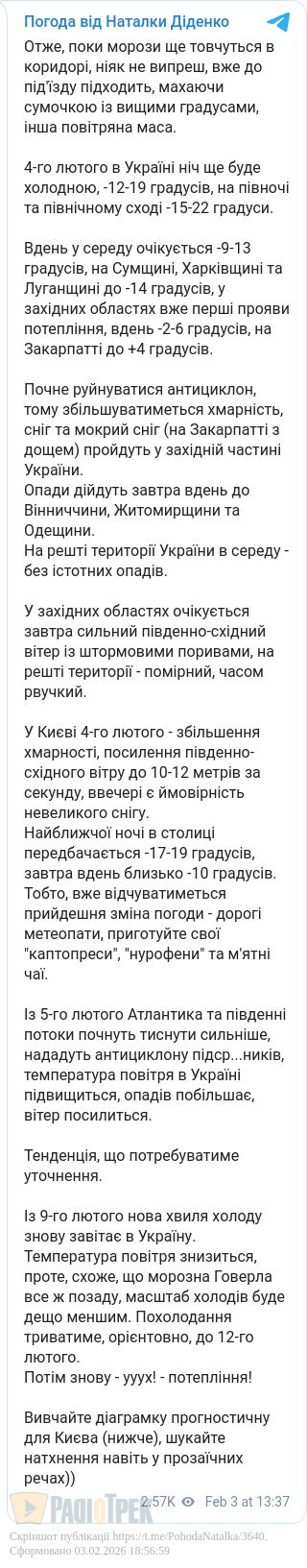 На жаль, потепління буде нетривалим. Вже з 9 лютого нова хвиля холоду знову завітає в Україну.