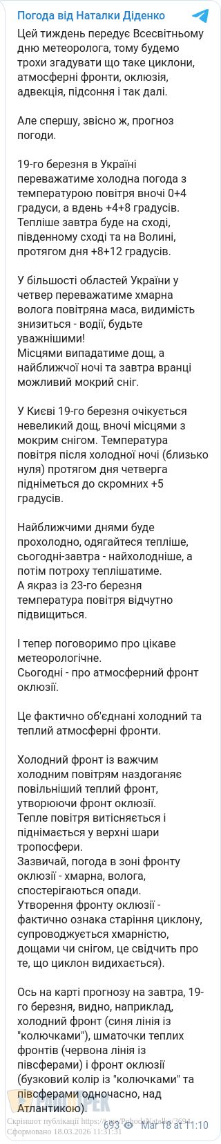 Завтра, 19 березня, в Україні переважатиме холодна погода.