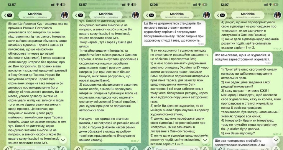 Команда артиста надіслала журналістці правки та вимоги видалити фрагменти, які порушували домовленості. У разі відмови вони погрожують судовими позовами та блокуванням контенту.