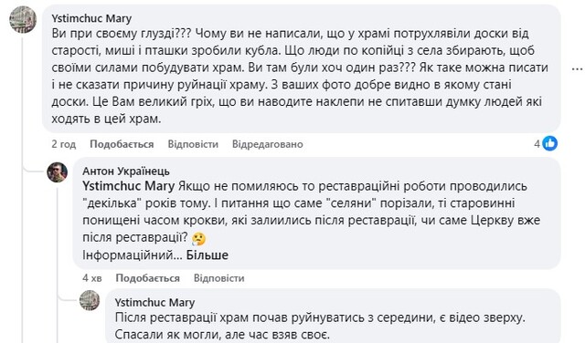 Тим часом у коментарях під дописом краєзнавця місцеві мешканці також пояснюють, що технічний стан споруди був аварійним, тож у майбутньому там хочуть побудувати новий храм.