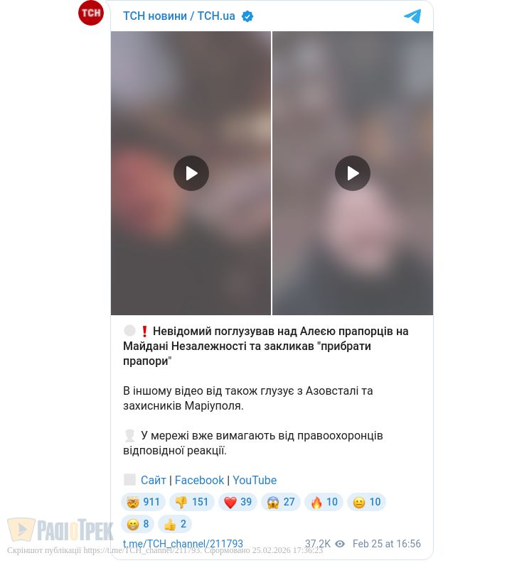 Відео викликали хвилю обурення в мережі. Користувачі публічно звертаються до правоохоронних органів із вимогою надати правову оцінку діям чоловіка та відреагувати на ситуацію.